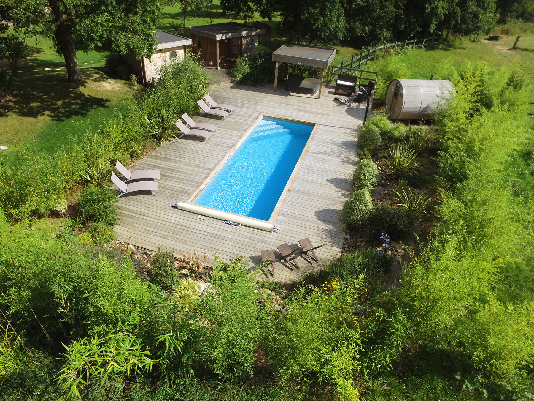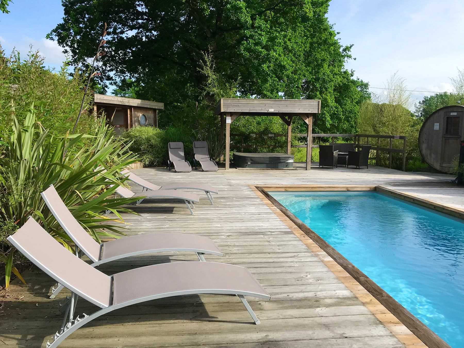 Profitez des bienfait du SPA tout en contemplant le cadre verdoyant de notre espace bien-être. Votre corps est plongé dans une eau à 37° tandis que votre visage reste au contact de l’air extérieur (fraicheur en hivers, douceur en été).